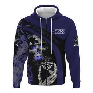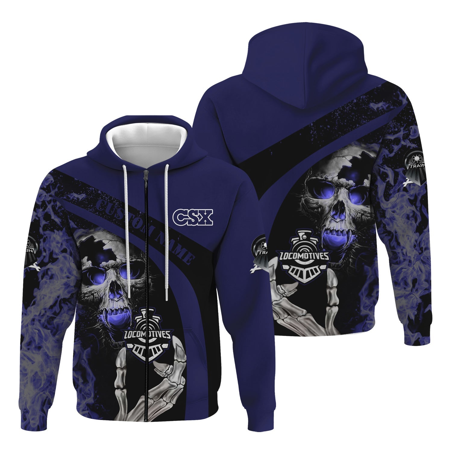 Railspirit Personalized CSX Transportation Railroad Hoodie Flame Skull Design Train Zip Up Hoodie for Locomotive Fans