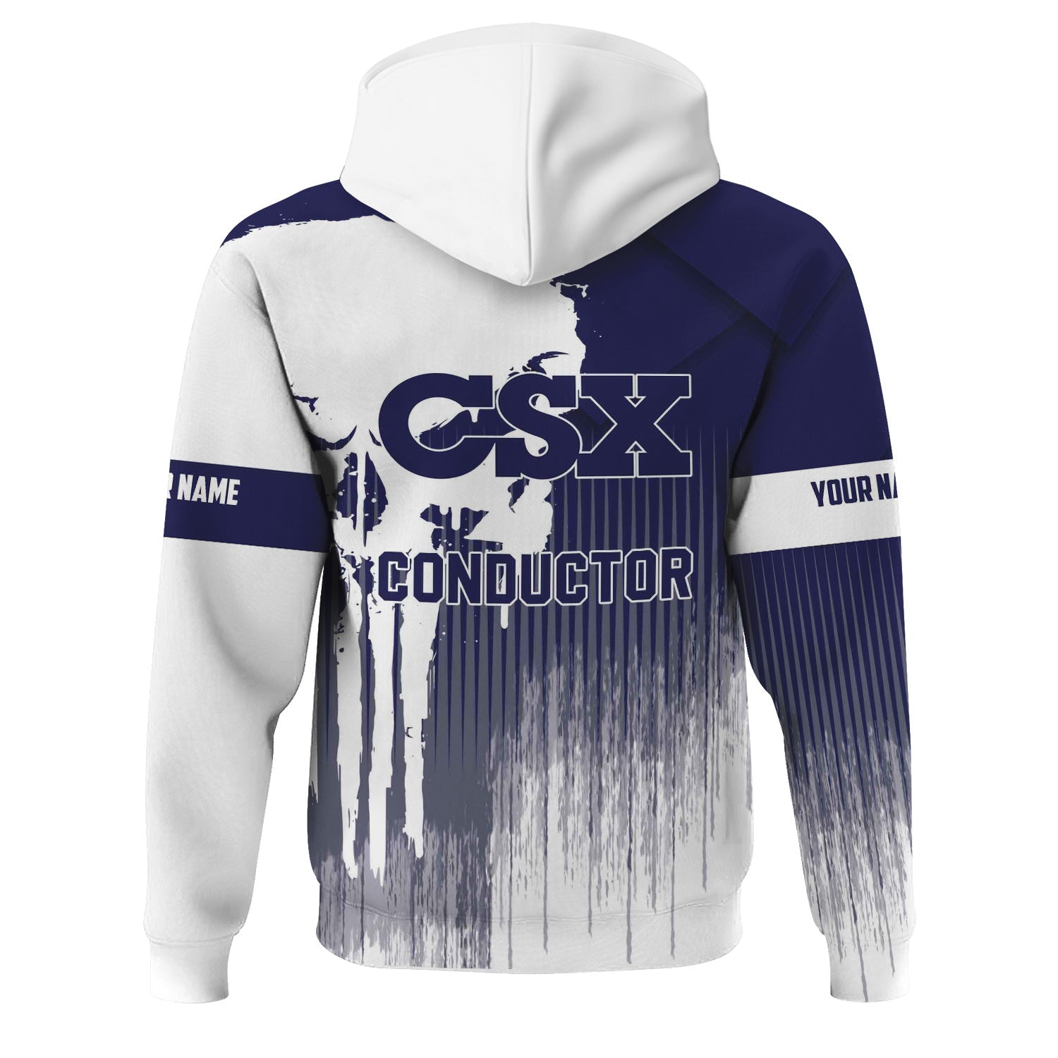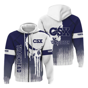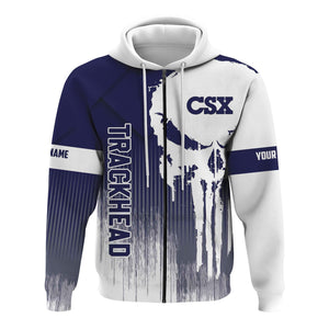 Railspirit Personalized CSX Transportation Railroad Hoodie Skull Design with Custom Job Train Zip Up Hoodie for Trackhead Crew