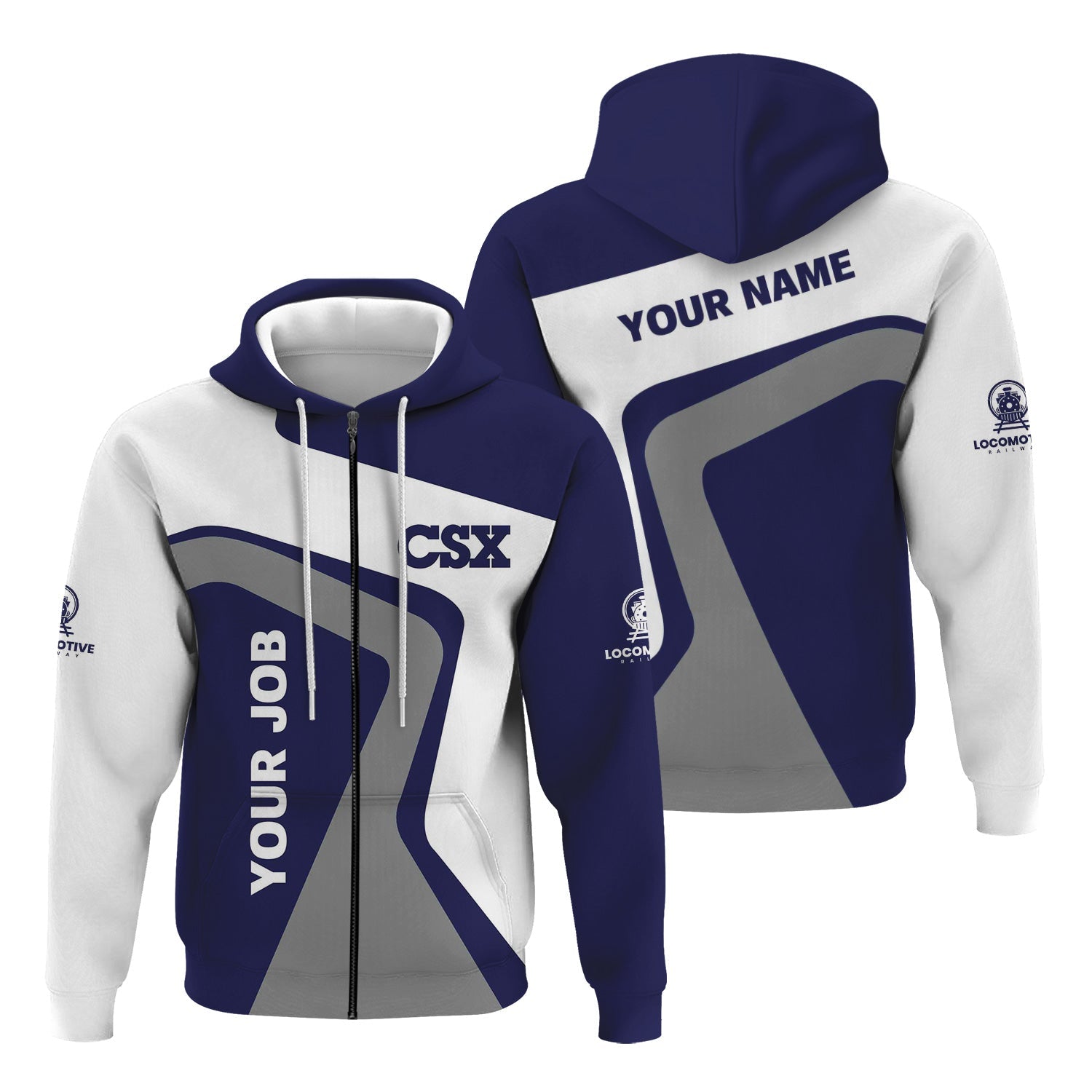Railspirit Personalized CSX Transportation Railroad Hoodie Unique Design with Custom Job Position Train Zip Up Hoodie