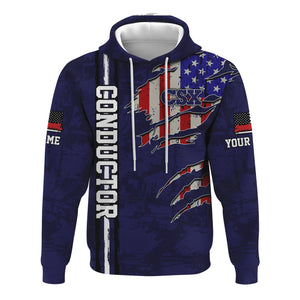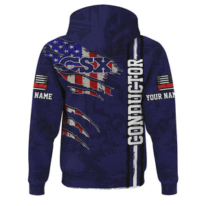 Railspirit Personalized CSX Transportation Railroad Hoodie USA Flag Claw Art with Custom Job Train Zip Up Hoodie
