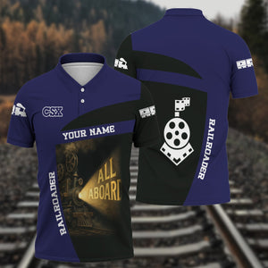 Railspirit Personalized CSX Transportation Railroad Polo Shirt All Aboard Steam Train Movie Projector Style Shirt