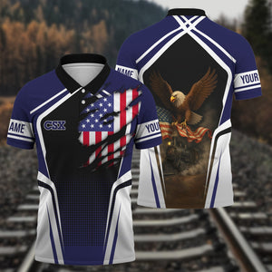 Railspirit Personalized CSX Transportation Railroad Polo Shirt American Eagle Vintage Train Shirt