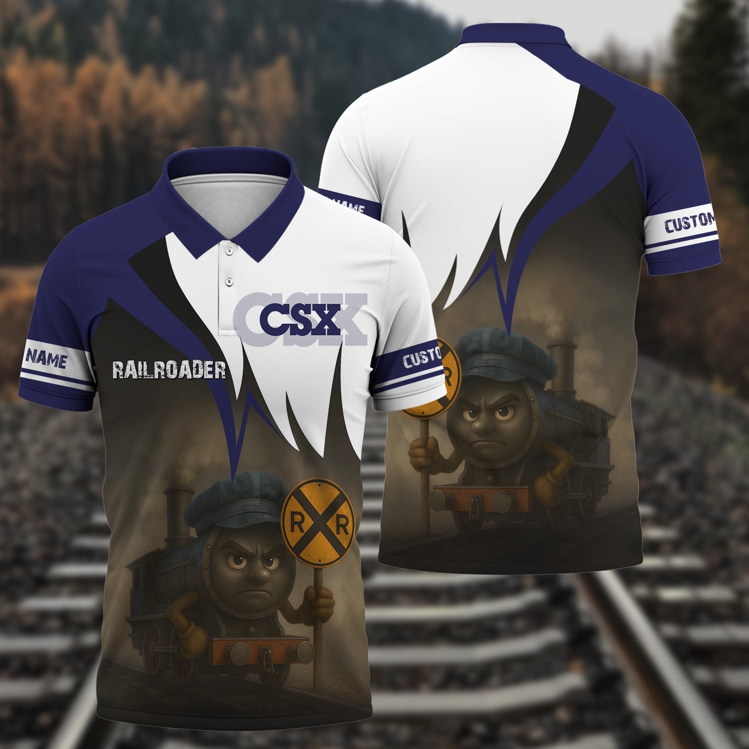 Railspirit Personalized CSX Transportation Railroad Polo Shirt Angry Train Polo Shirt Gift Idea For Train Lover