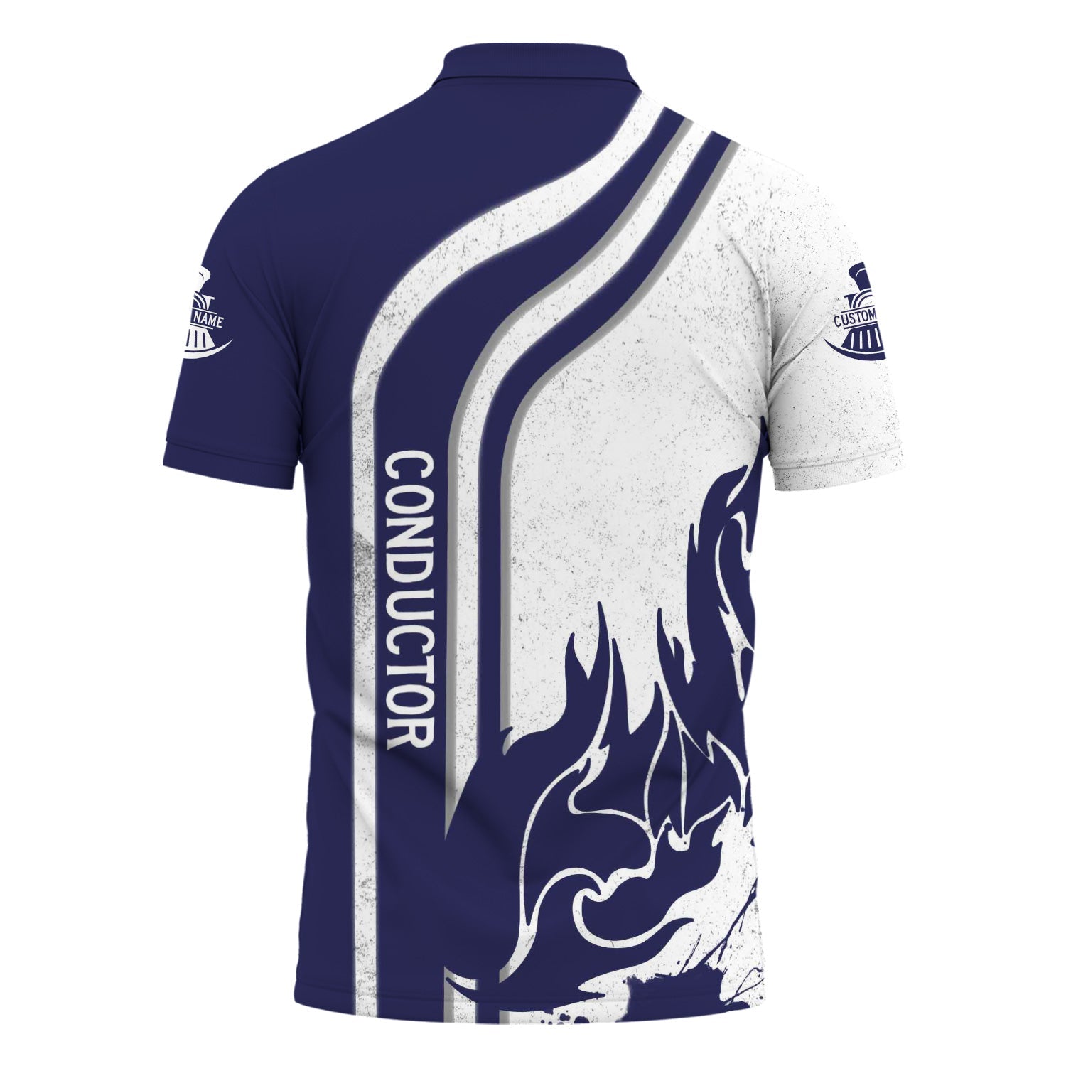 Railspirit Personalized CSX Transportation Railroad Polo Shirt Flame Design with Custom Job Position Train Shirt