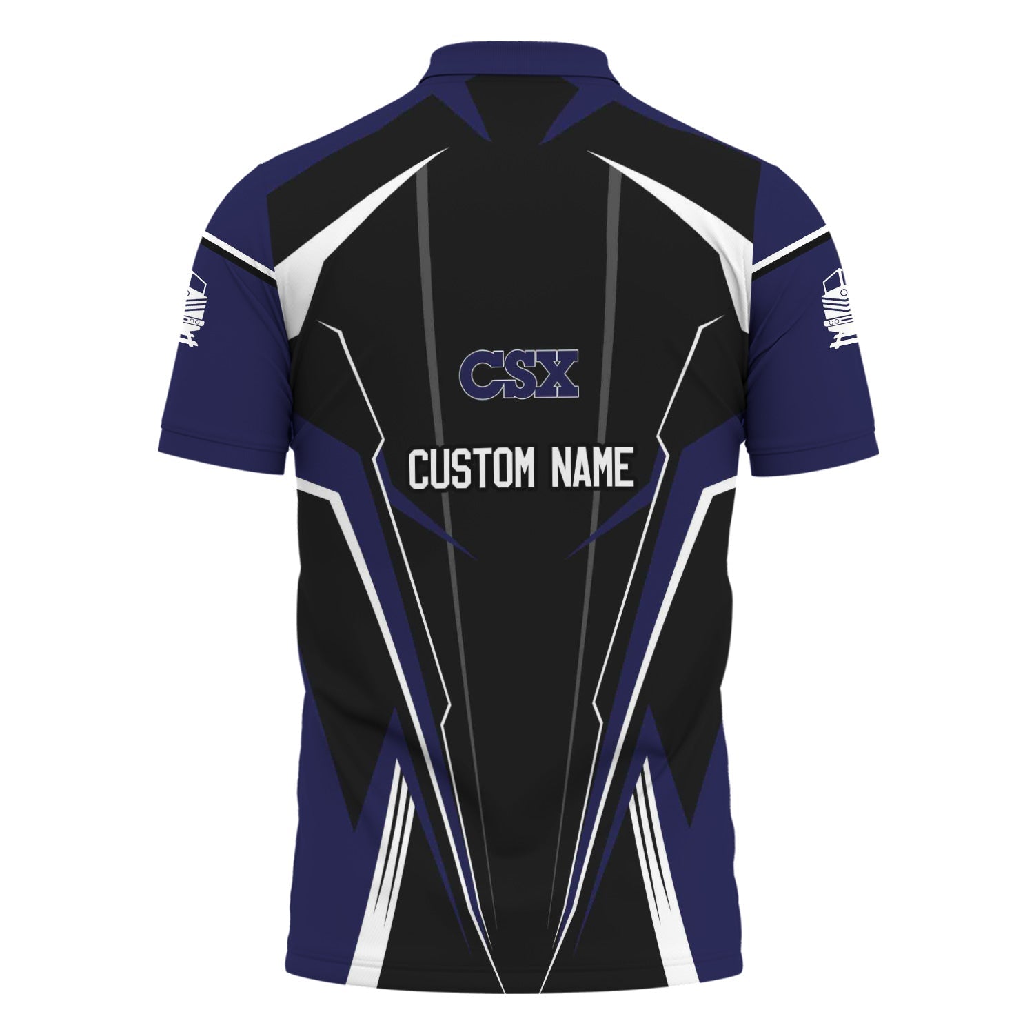 Railspirit Personalized CSX Transportation Railroad Polo Shirt Lightning-Edge Design Train Shirt For Railroad Lovers