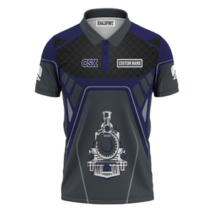 Railspirit Personalized CSX Transportation Railroad Polo Shirt Steam Locomotive Engine Graphic Train Shirt All Over Print
