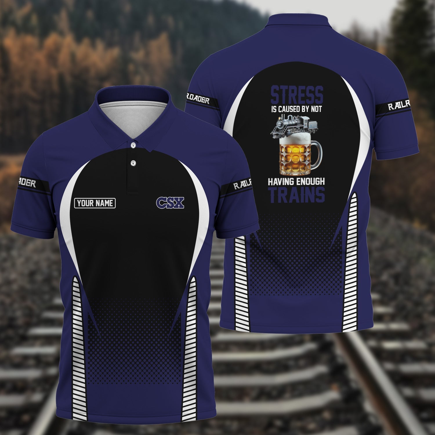 Railspirit Personalized CSX Transportation Railroad Polo Shirt Stress Is Caused By Not Having Enough Trains Shirt All Over Print