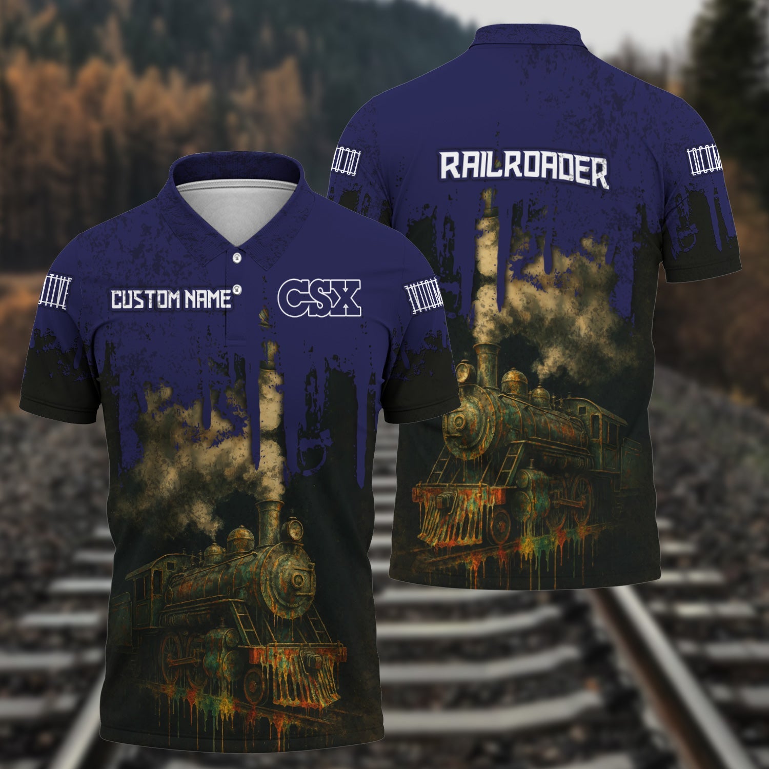 Railspirit Personalized CSX Transportation Railroad Polo Shirt Vintage Train Art Style Shirt For Locomotive Fans