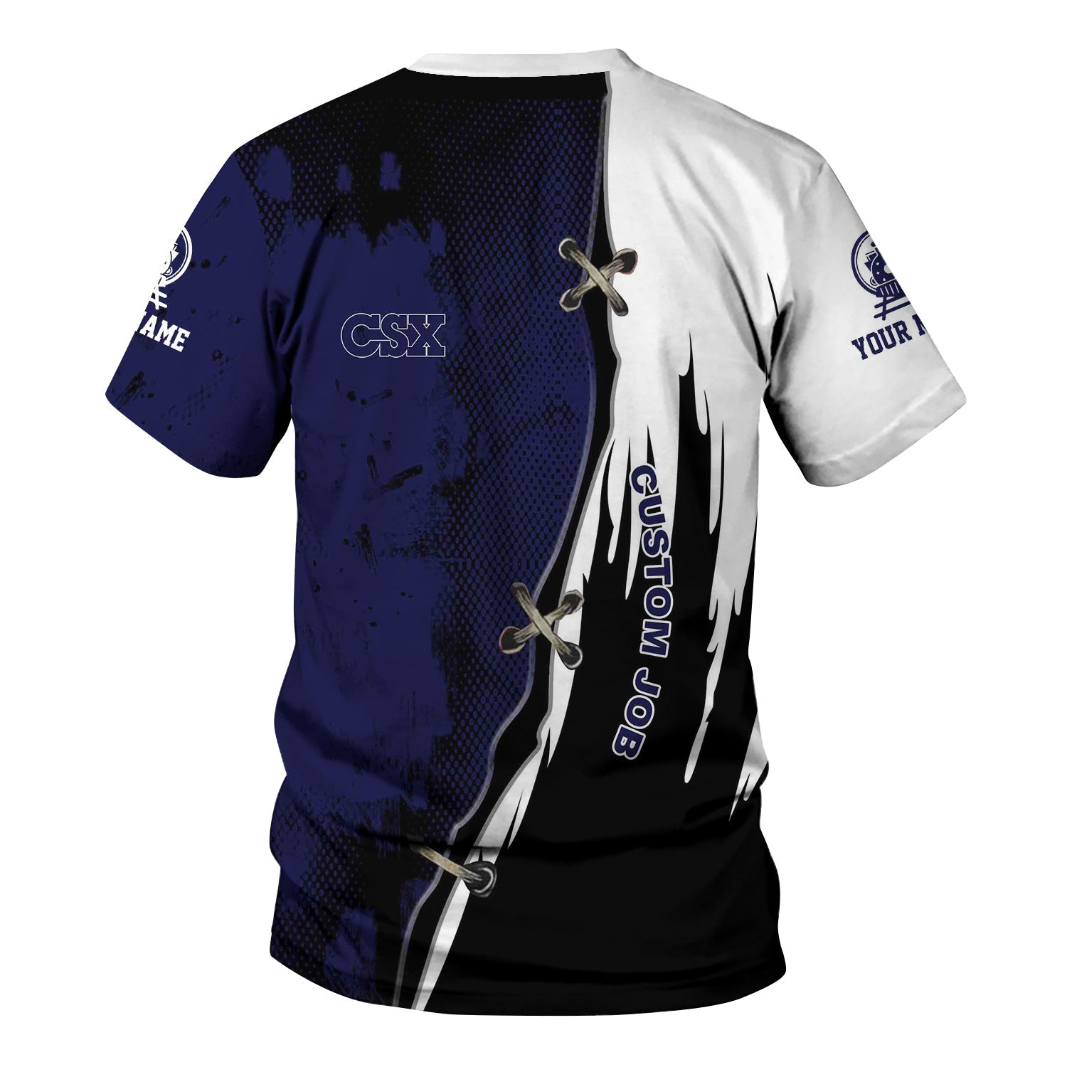 Railspirit Personalized CSX Transportation Railroad T-Shirt Retro Stitches Design with Custom Position Train Shirt