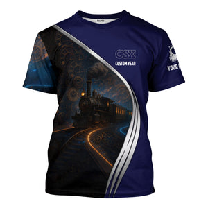 Railspirit Personalized CSX Transportation Railroad T-Shirt Steampunk Locomotive with Custom Year Train Shirt