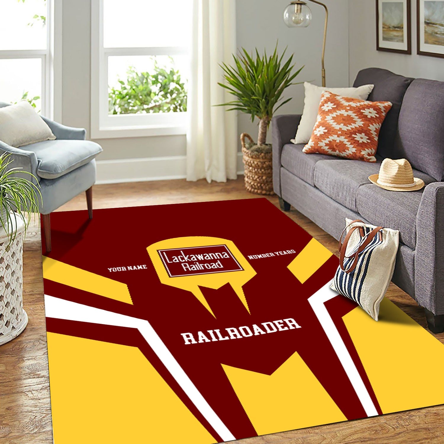 Railspirit Personalized Delaware, Lackawanna and Western Railroad Area Rug Custom Year Railroader DL&W Rug Gift Idea For Train Lover