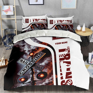 Railspirit Personalized Delaware, Lackawanna and Western Railroad Bedding Set Railroad Crossing Sign DL&W Bedding Set All Over Print