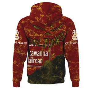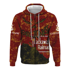 Railspirit Personalized Delaware, Lackawanna and Western Railroad Hoodie Torn Graphic Style DL&W Train Zip Up Hoodie For Rail Junkie