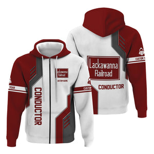 Railspirit Personalized Delaware, Lackawanna and Western Railroad Hoodie Unique Railway Style with Custom Job DL&W Train Zip Up Hoodie