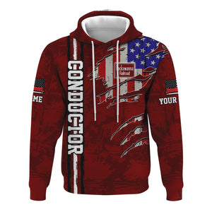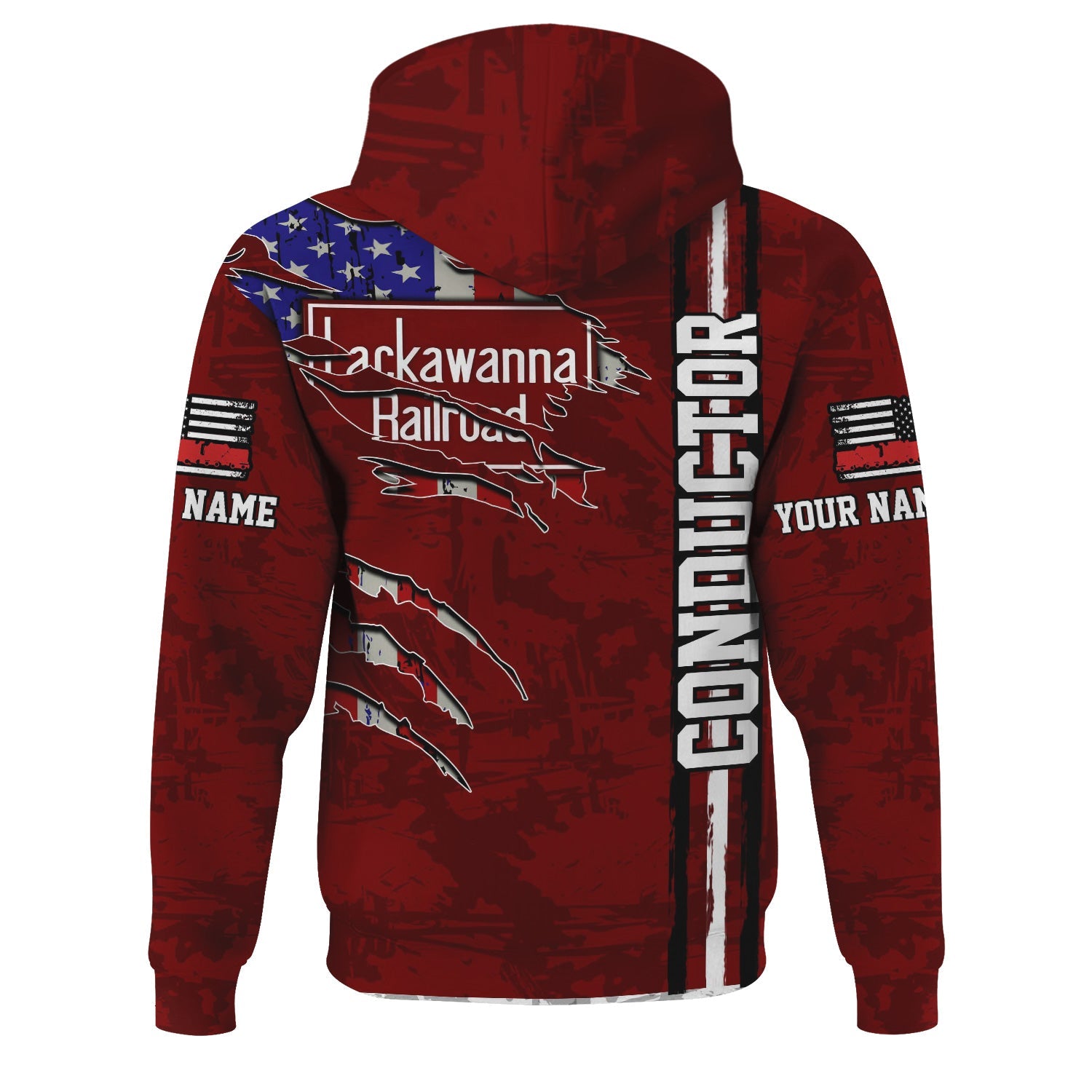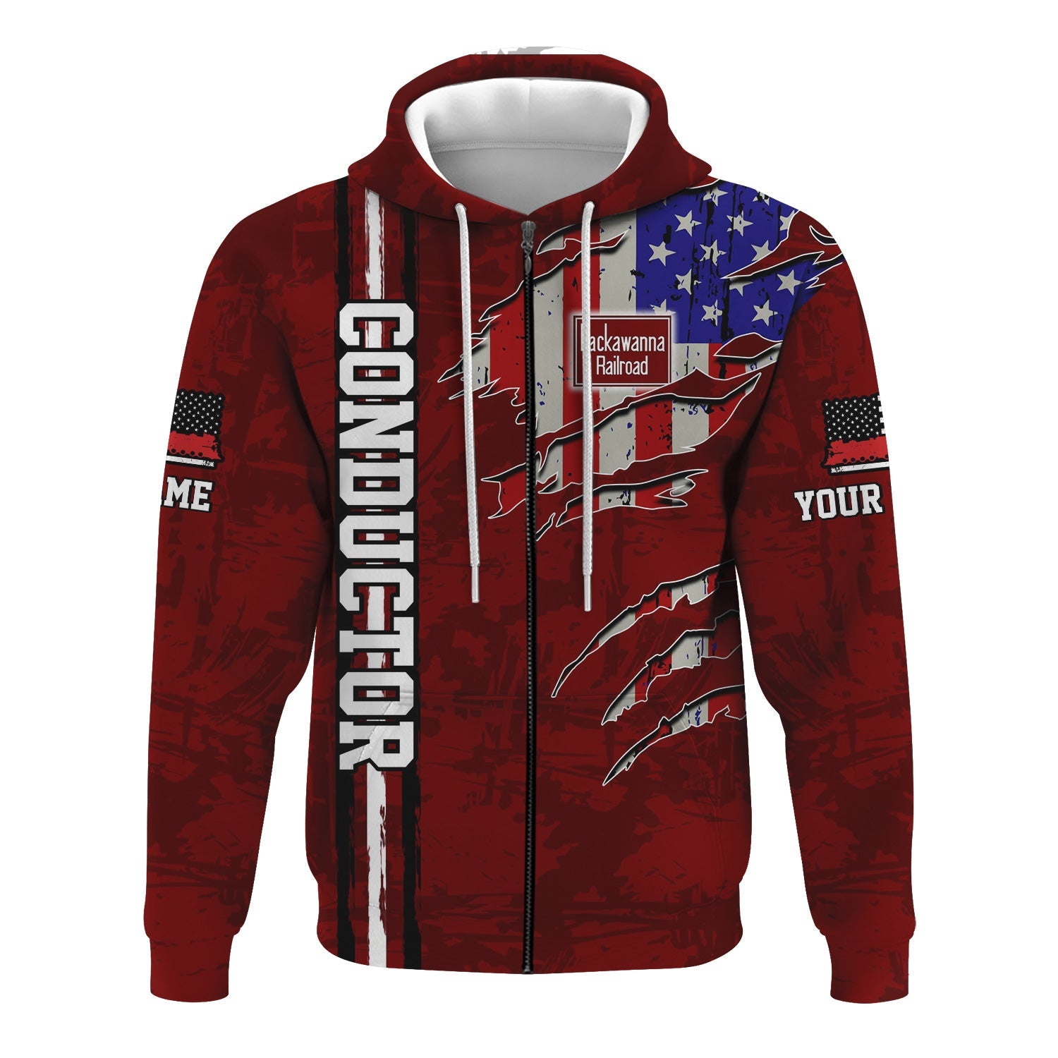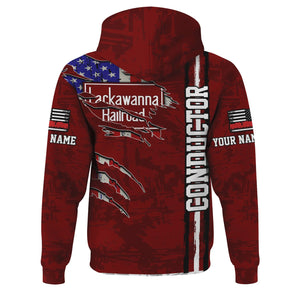 Railspirit Personalized Delaware, Lackawanna and Western Railroad Hoodie USA Flag Claw Art with Custom Job DL&W Train Zip Up Hoodie
