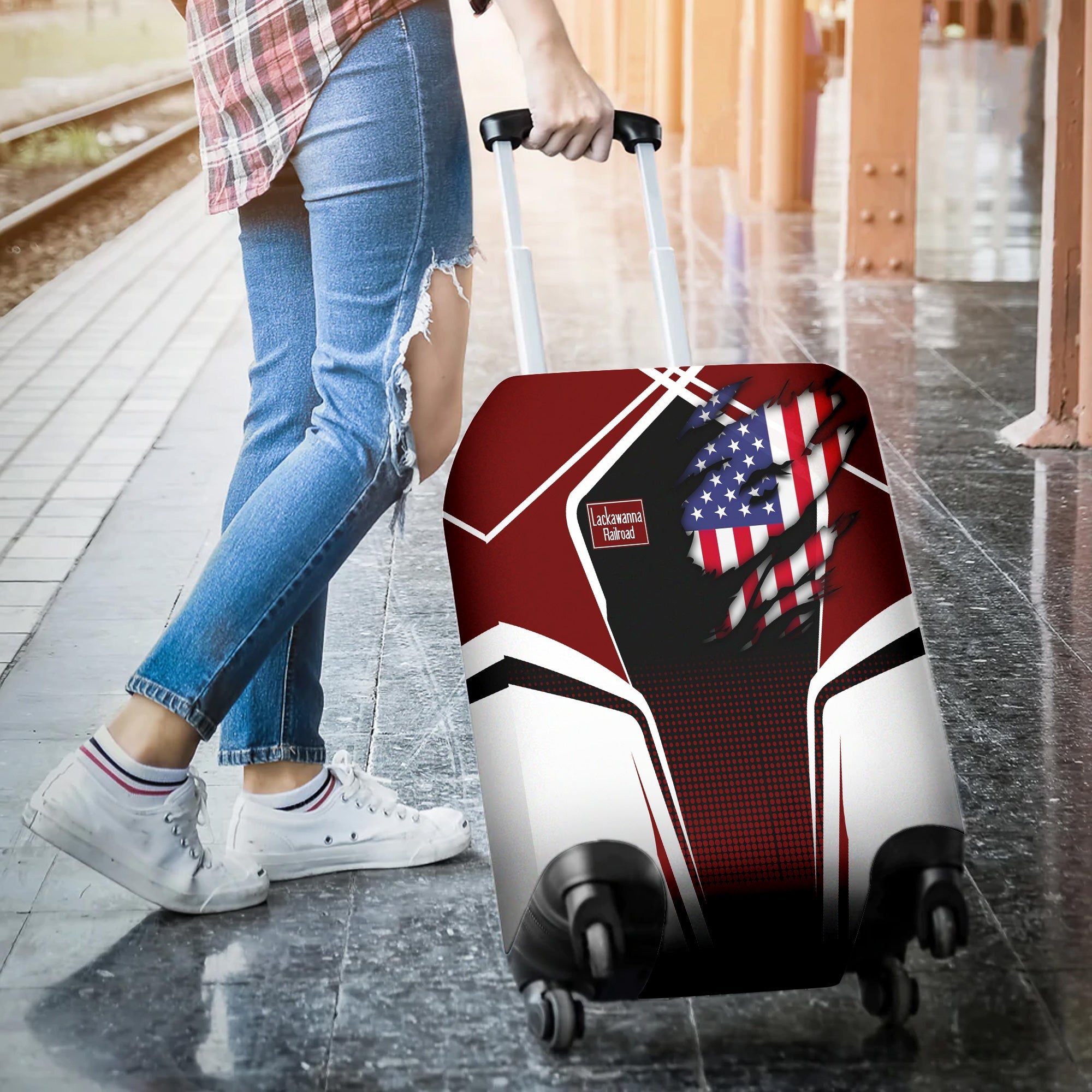 Railspirit Personalized Delaware, Lackawanna and Western Railroad Luggage Cover American Eagle Vintage Train DL&W Luggage Protection