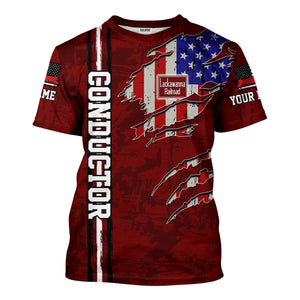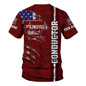 Railspirit Personalized Delaware, Lackawanna and Western Railroad T-Shirt USA Flag Claw Art with Custom Job DL&W Train Shirt