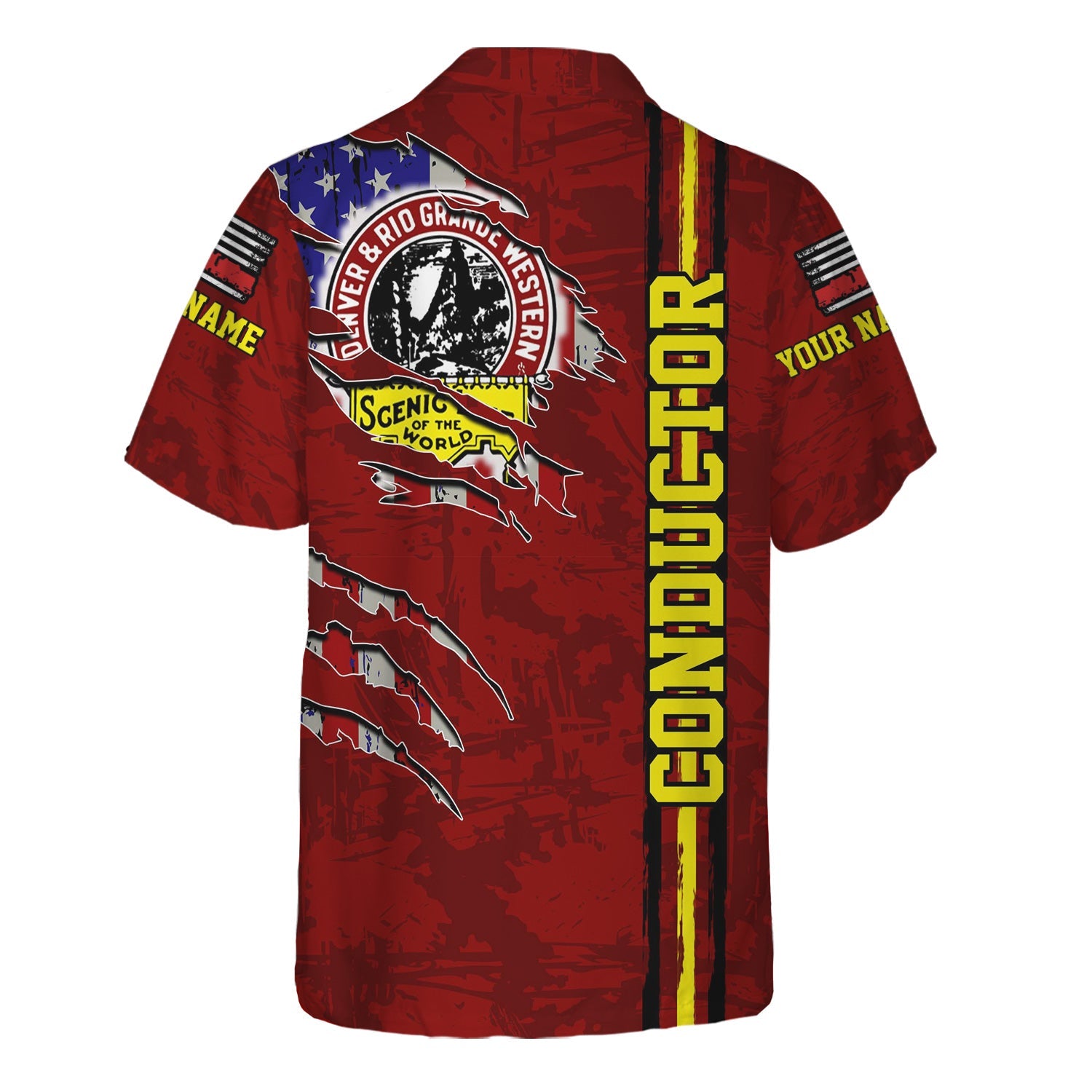 Railspirit Personalized Denver and Rio Grande Western Railroad Hawaiian Shirt USA Flag Claw Art with Custom Job Train Shirt