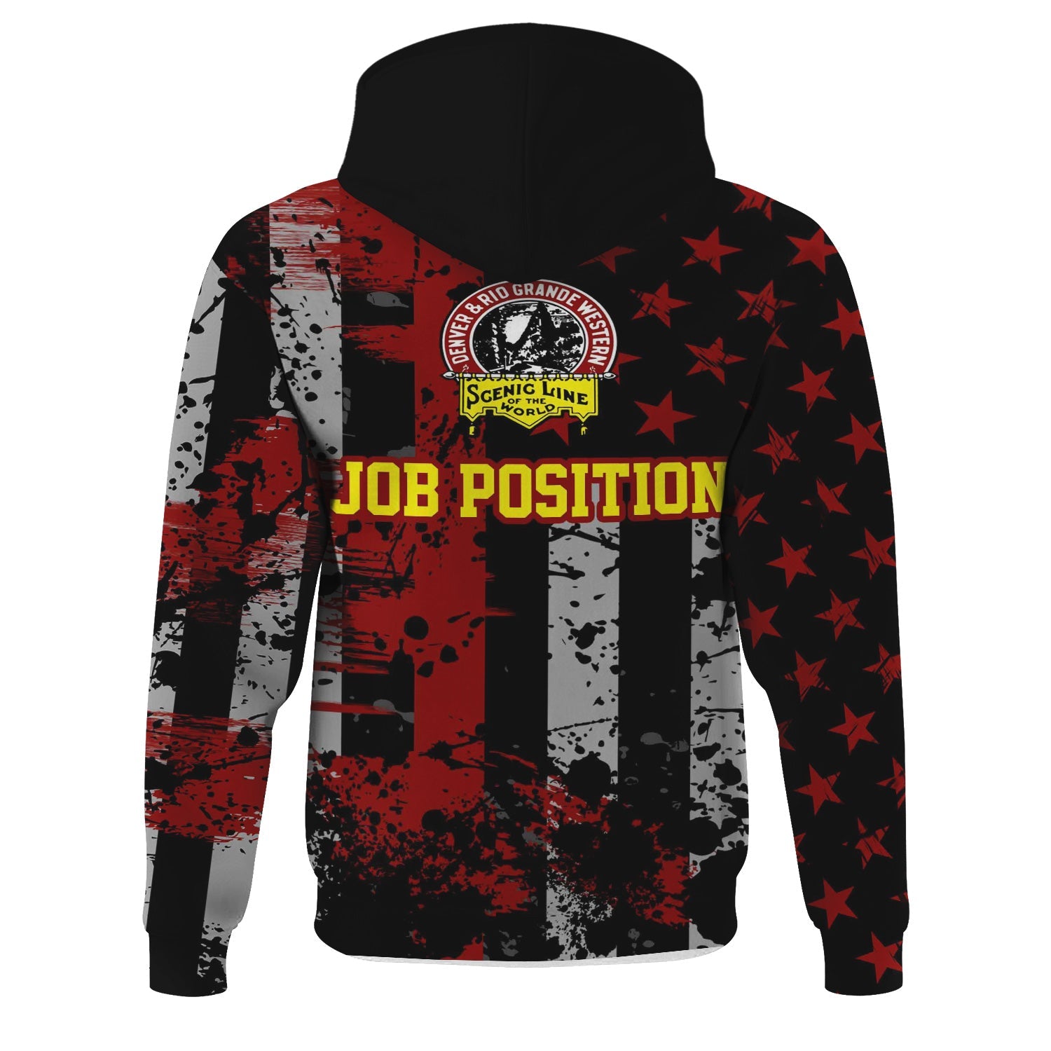 Railspirit Personalized Denver and Rio Grande Western Railroad Hoodie Artistic Paint American Flag Style Train Zip Up Hoodie