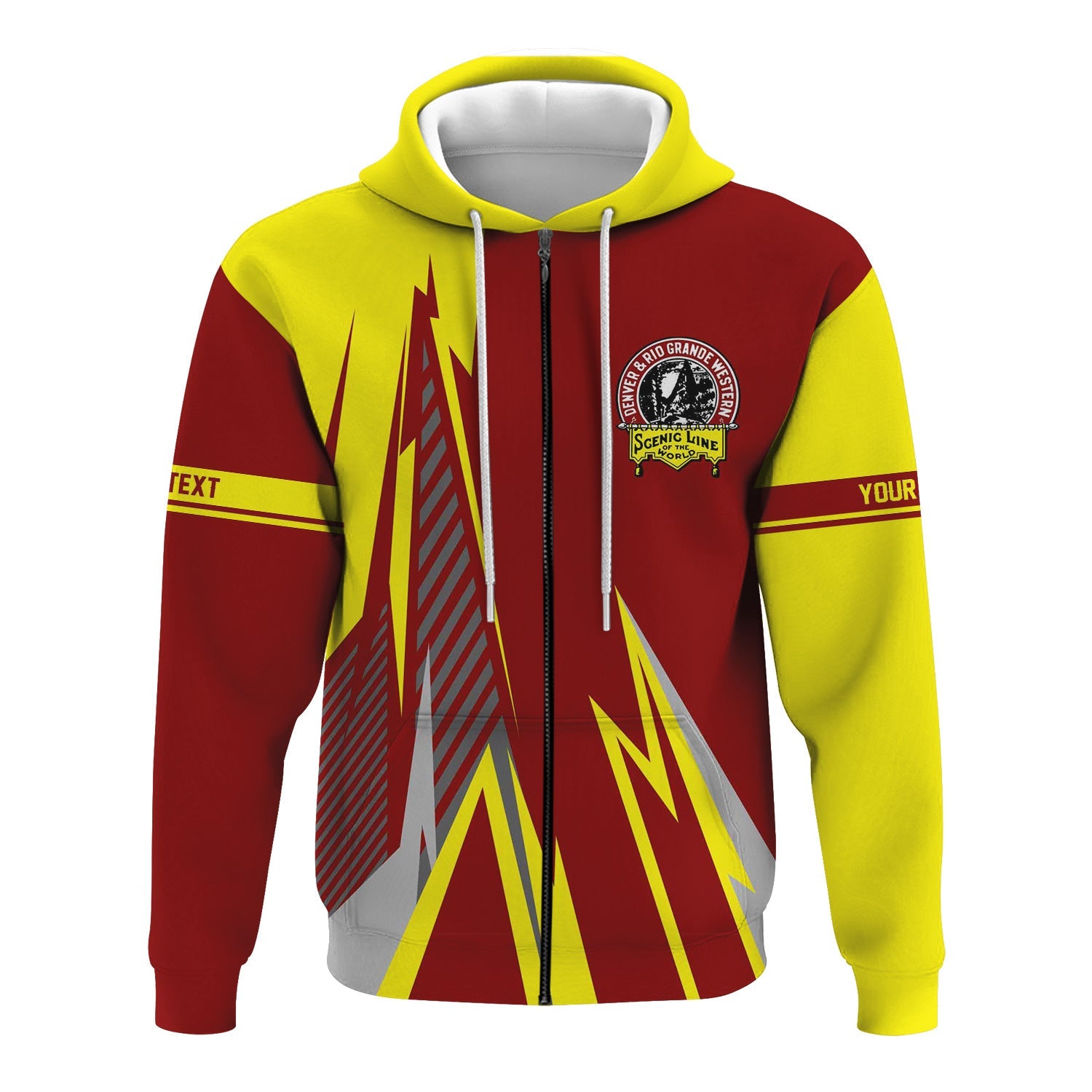 Railspirit Personalized Denver and Rio Grande Western Railroad Hoodie Lightning-Inspired Railway Style Zip Up Hoodie For Train Lovers