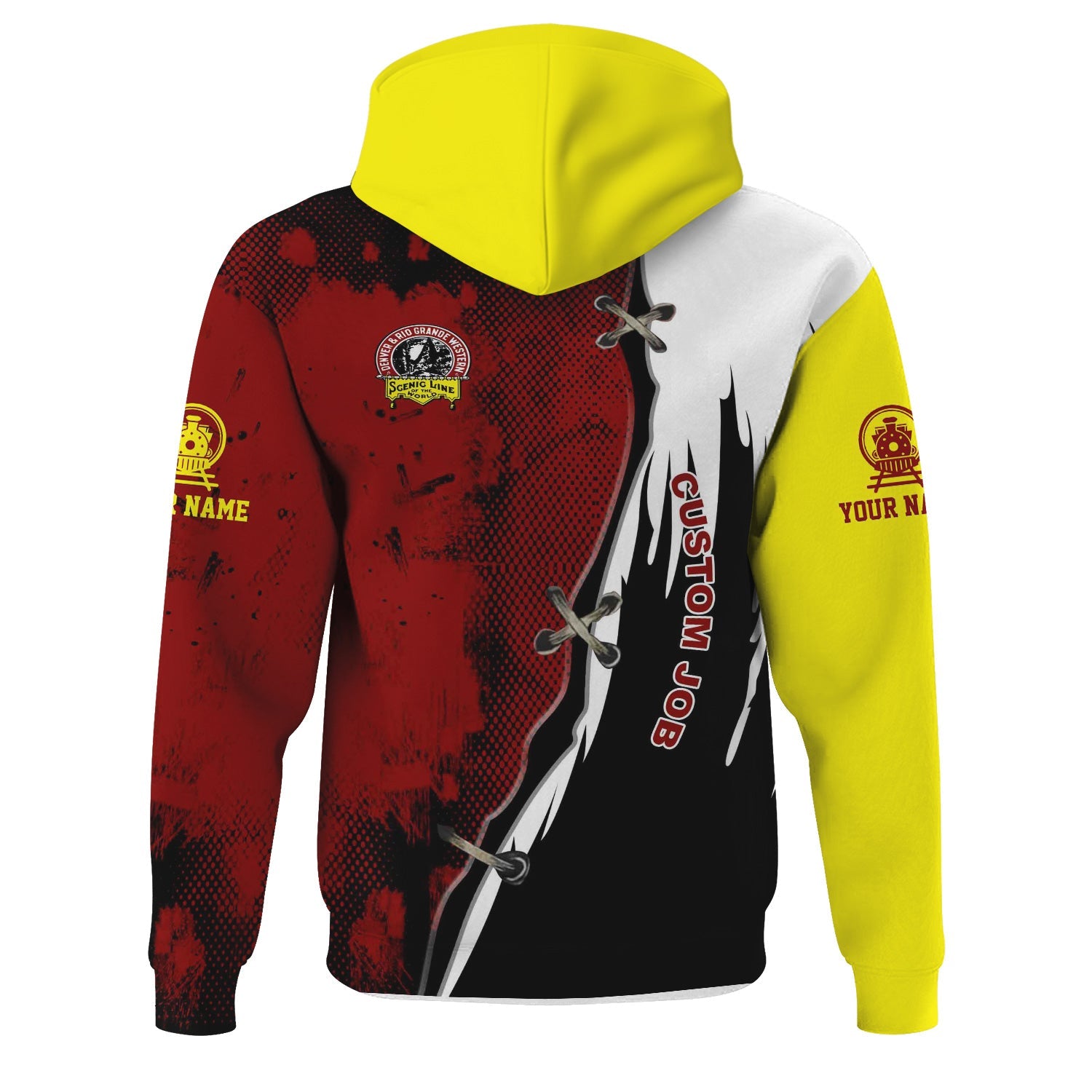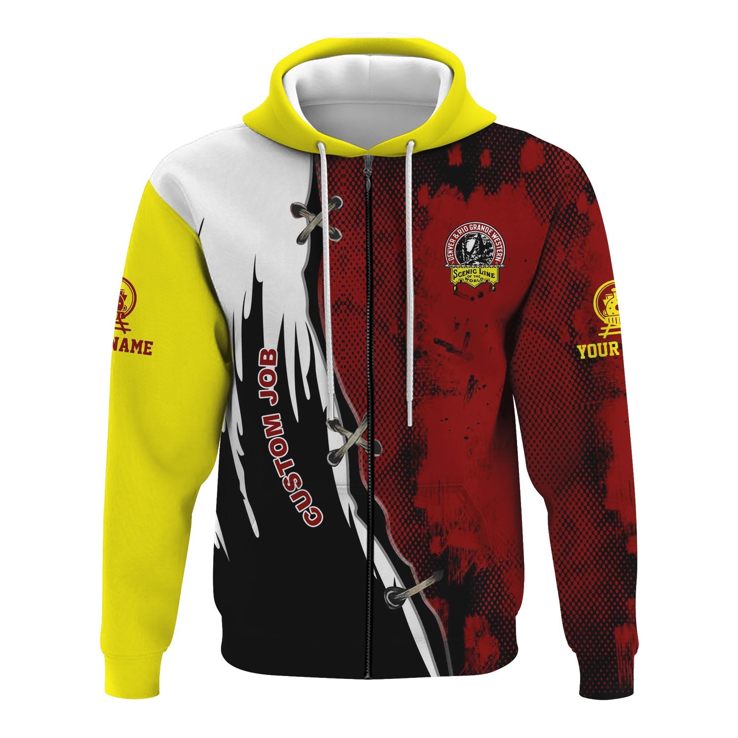 Railspirit Personalized Denver and Rio Grande Western Railroad Hoodie Retro Stitches Design with Custom Position Train Zip Up Hoodie