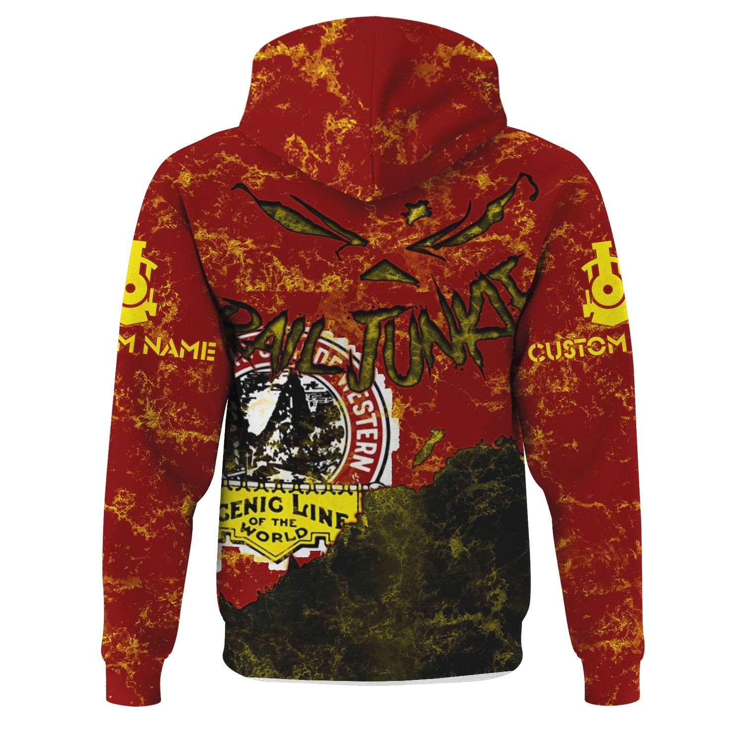 Railspirit Personalized Denver and Rio Grande Western Railroad Hoodie Torn Graphic Style Train Zip Up Hoodie For Rail Junkie