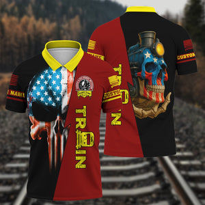 Railspirit Personalized Denver and Rio Grande Western Railroad Polo Shirt Train Skull American Flag Shirt All Over Print