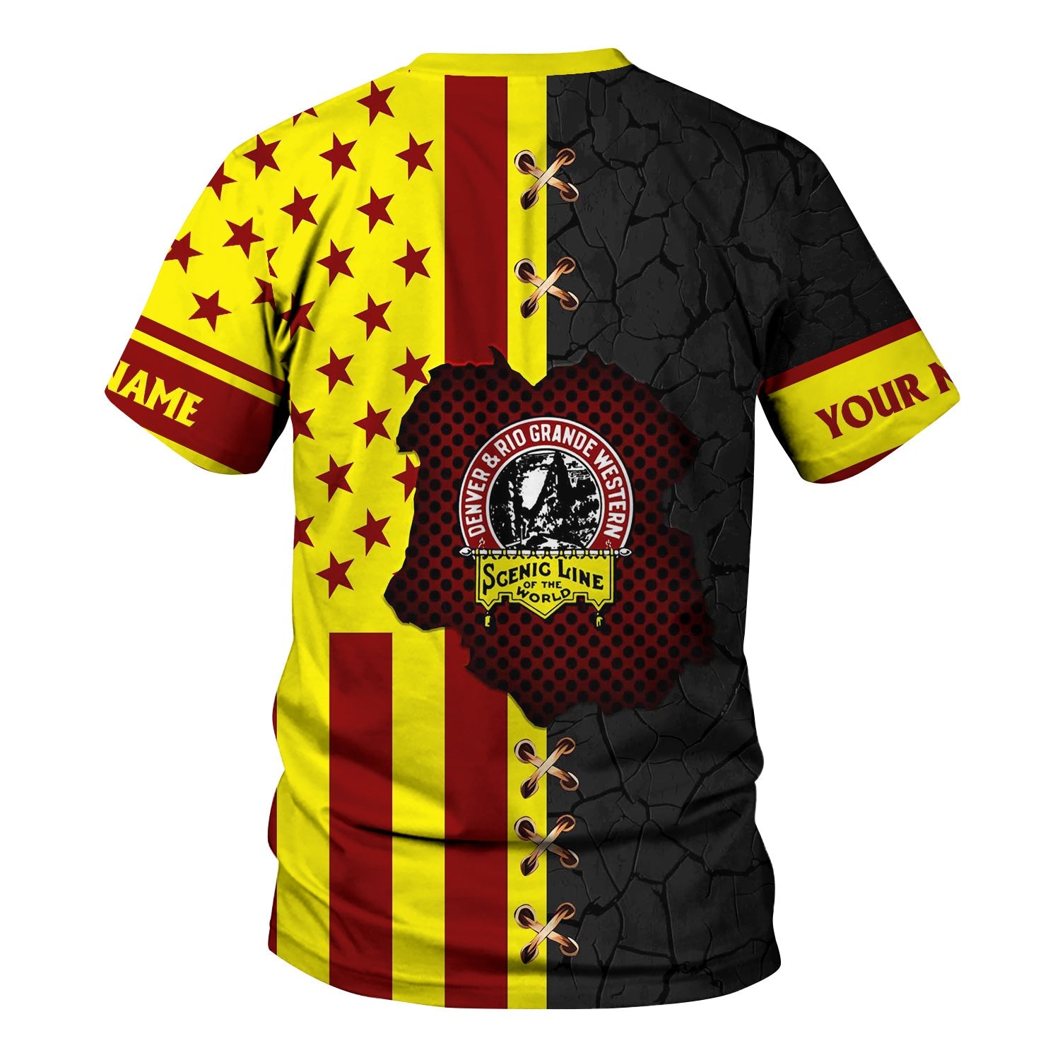 Railspirit Personalized Denver and Rio Grande Western Railroad T-Shirt American Flag with Crack Effect Train Shirt