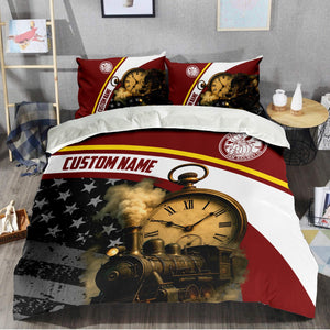 Railspirit Personalized Detroit & Mackinac Railroad Bedding Set Classic Steam Engine With Retro Pocket Watch Bedding Set All Over Print