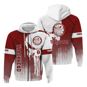 Railspirit Personalized Detroit & Mackinac Railroad Hoodie Skull Design with Custom Job Train Zip Up Hoodie for Trackhead Crew