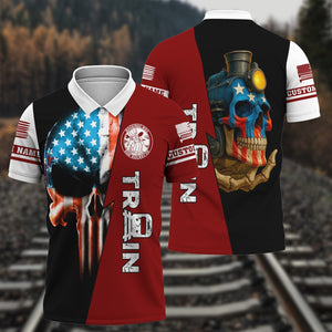 Railspirit Personalized Detroit & Mackinac Railroad Polo Shirt Train Skull American Flag Shirt All Over Print