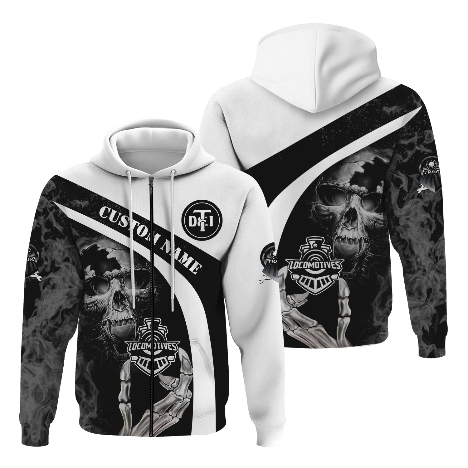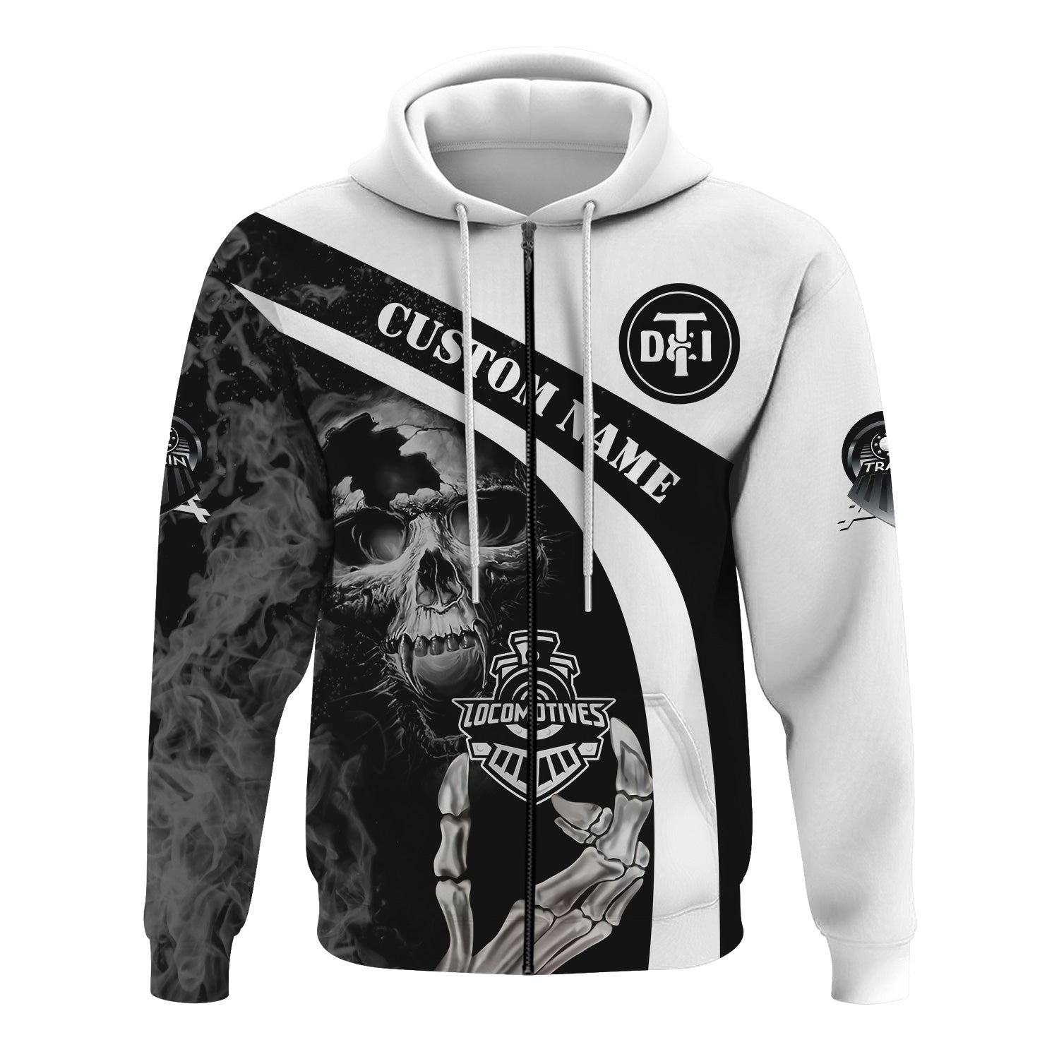 Railspirit Personalized Detroit Toledo And Ironton Railroad Hoodie Flame Skull Design Train Zip Up Hoodie for Locomotive Fans