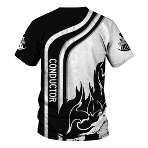 Railspirit Personalized Detroit Toledo And Ironton Railroad T-Shirt Flame Design with Custom Job Position Train Shirt