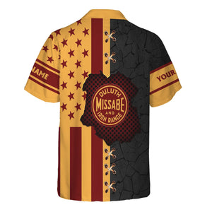 Railspirit Personalized Duluth, Missabe, & Iron Range Railroad Hawaiian Shirt American Flag with Crack Effect Train Shirt