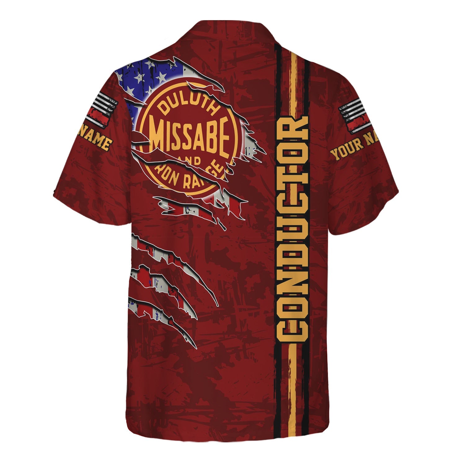 Railspirit Personalized Duluth, Missabe, & Iron Range Railroad Hawaiian Shirt USA Flag Claw Art with Custom Job Train Shirt