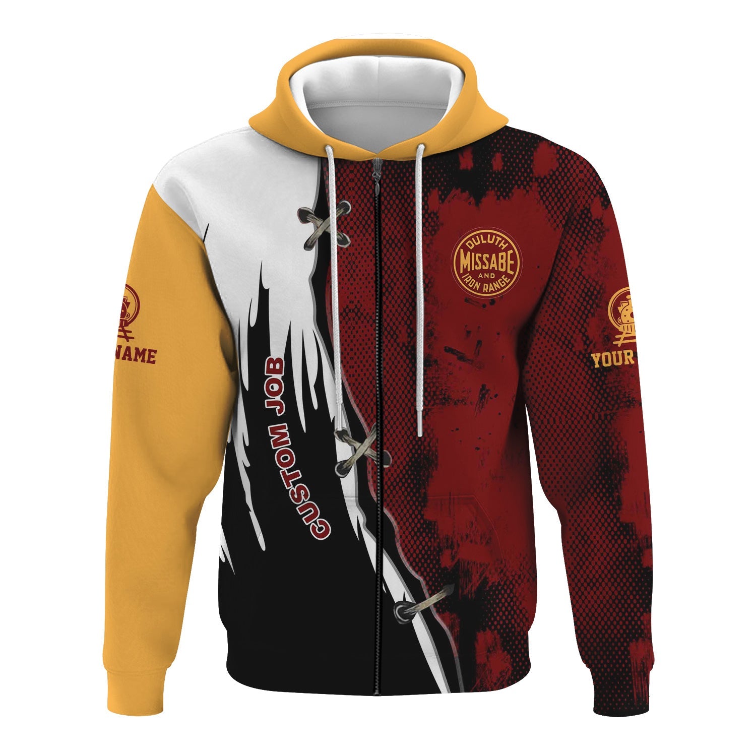 Railspirit Personalized Duluth, Missabe, & Iron Range Railroad Hoodie Retro Stitches Design with Custom Position Train Zip Up Hoodie
