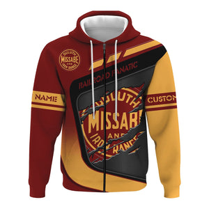 Railspirit Personalized Duluth, Missabe, & Iron Range Railroad Hoodie Ripped Texture Style Train Zip Up Hoodie For Railroad Fanatic
