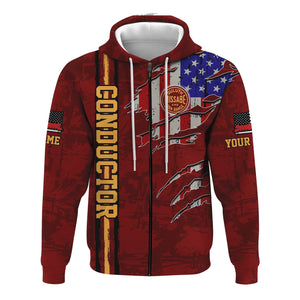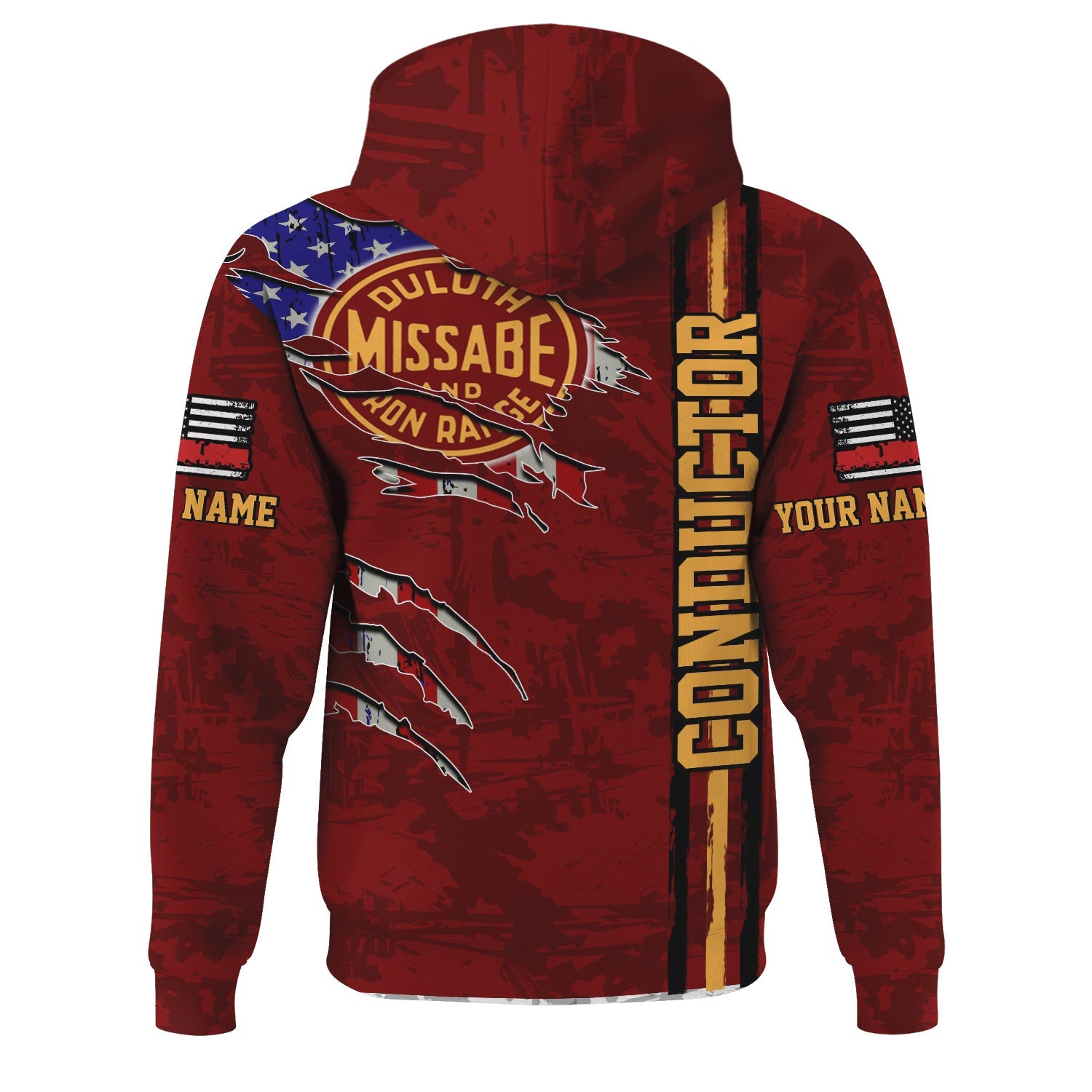 Railspirit Personalized Duluth, Missabe, & Iron Range Railroad Hoodie USA Flag Claw Art with Custom Job Train Zip Up Hoodie