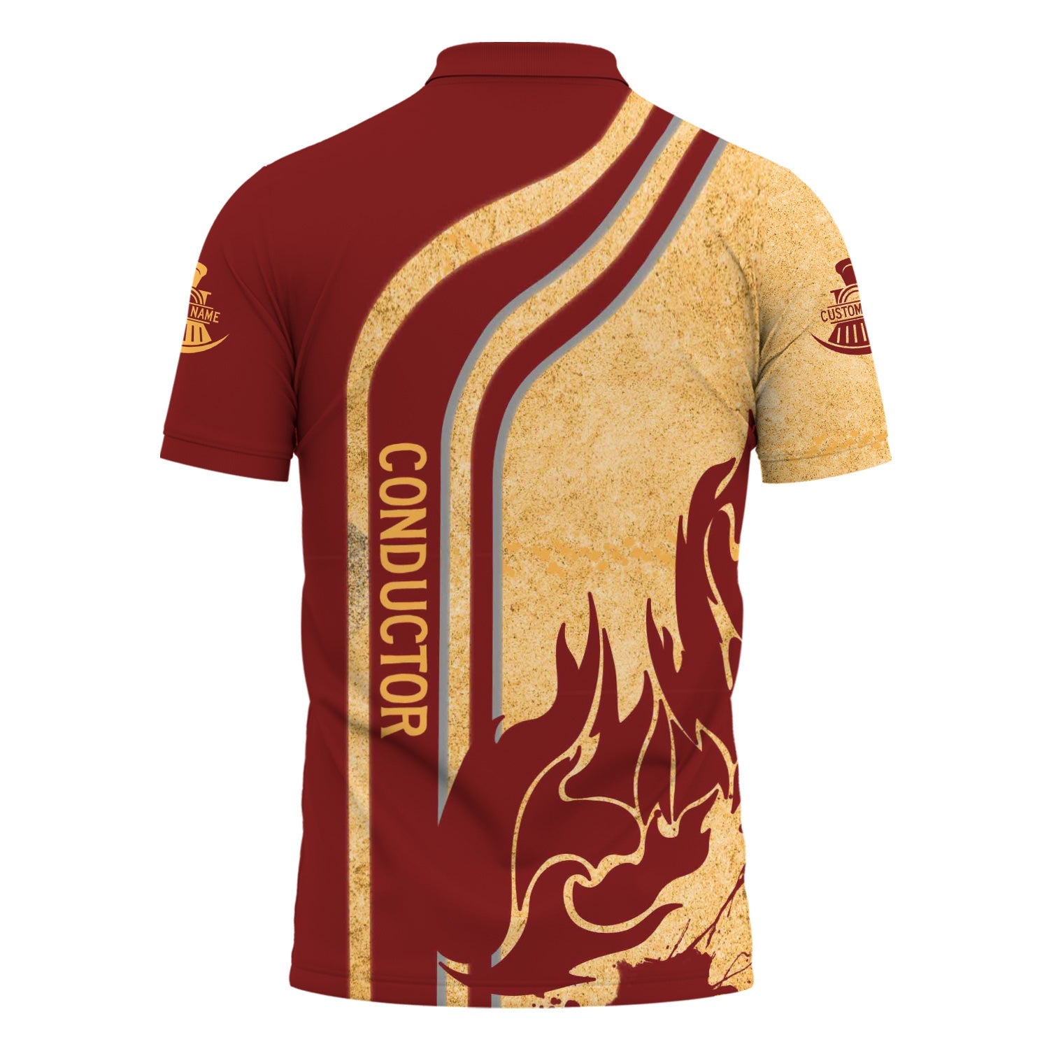 Railspirit Personalized Duluth, Missabe, & Iron Range Railroad Polo Shirt Flame Design with Custom Job Position Train Shirt