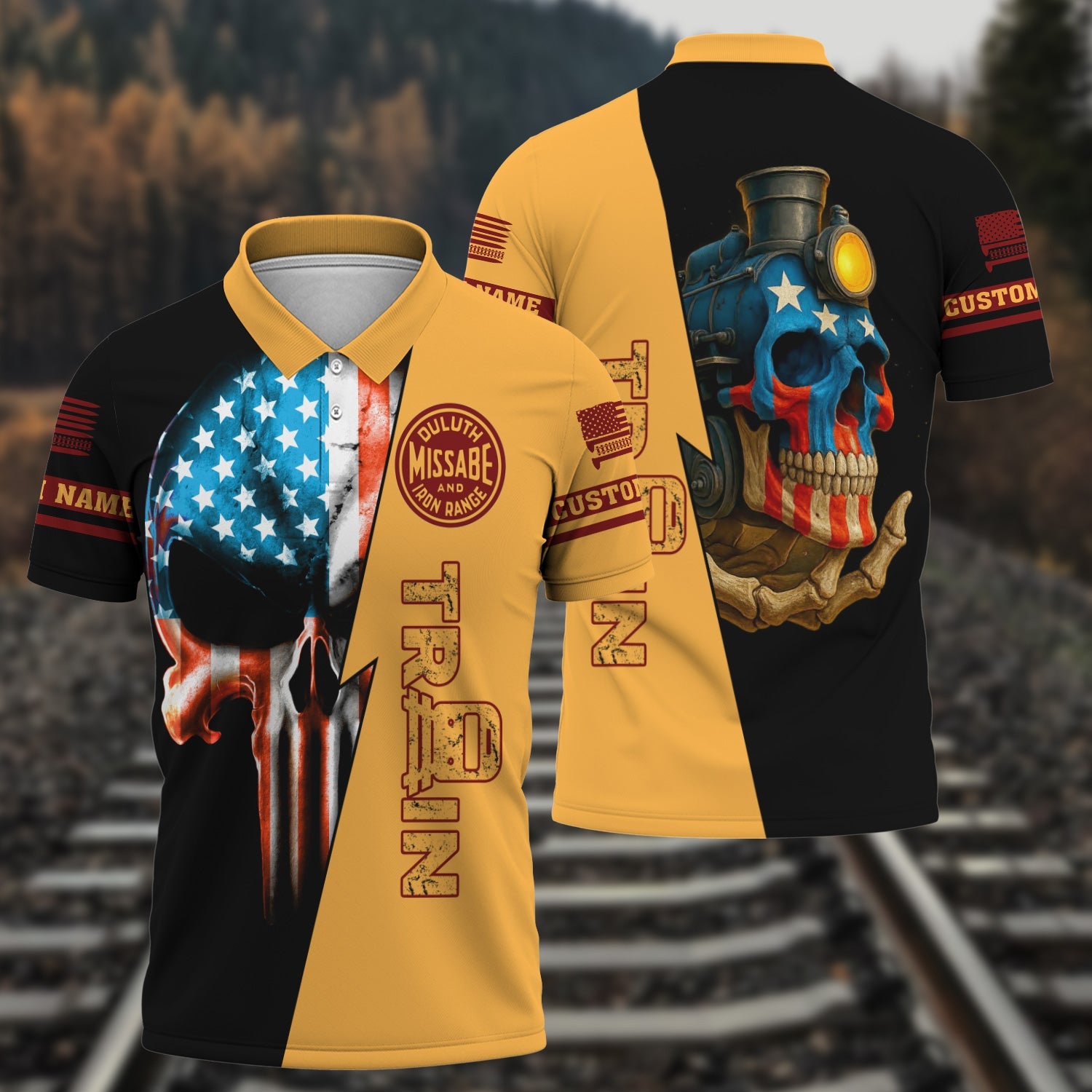 Railspirit Personalized Duluth, Missabe, & Iron Range Railroad Polo Shirt Train Skull American Flag Shirt All Over Print