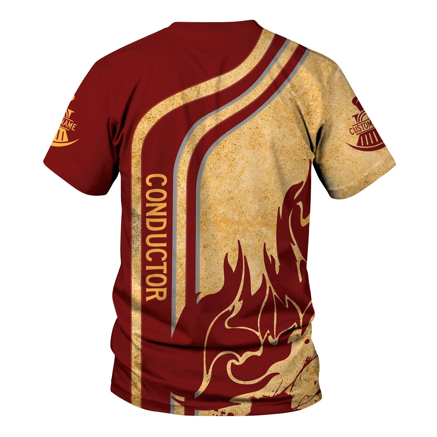 Railspirit Personalized Duluth, Missabe, & Iron Range Railroad T-Shirt Flame Design with Custom Job Position Train Shirt