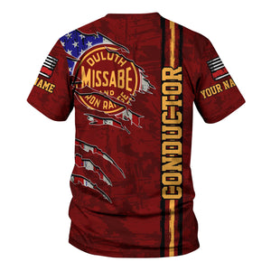 Railspirit Personalized Duluth, Missabe, & Iron Range Railroad T-Shirt USA Flag Claw Art with Custom Job Train Shirt