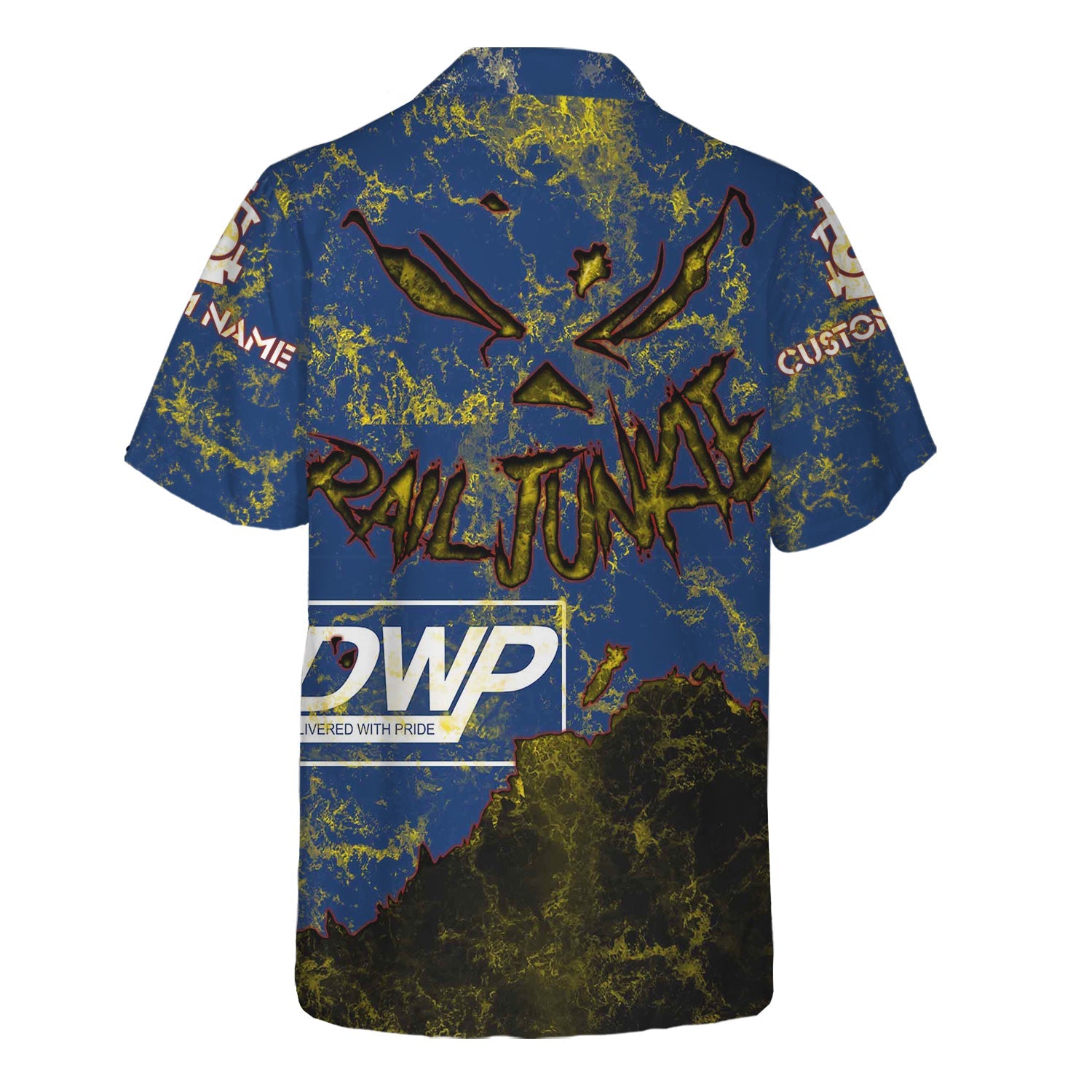 Railspirit Personalized Duluth, Winnipeg and Pacific Railway Hawaiian Shirt Torn Graphic Style Train Shirt For Rail Junkie
