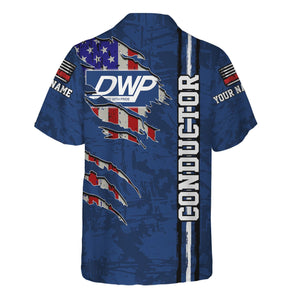 Railspirit Personalized Duluth, Winnipeg and Pacific Railway Hawaiian Shirt USA Flag Claw Art with Custom Job Train Shirt