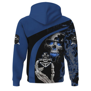 Railspirit Personalized Duluth, Winnipeg and Pacific Railway Hoodie Flame Skull Design Train Zip Up Hoodie for Locomotive Fans