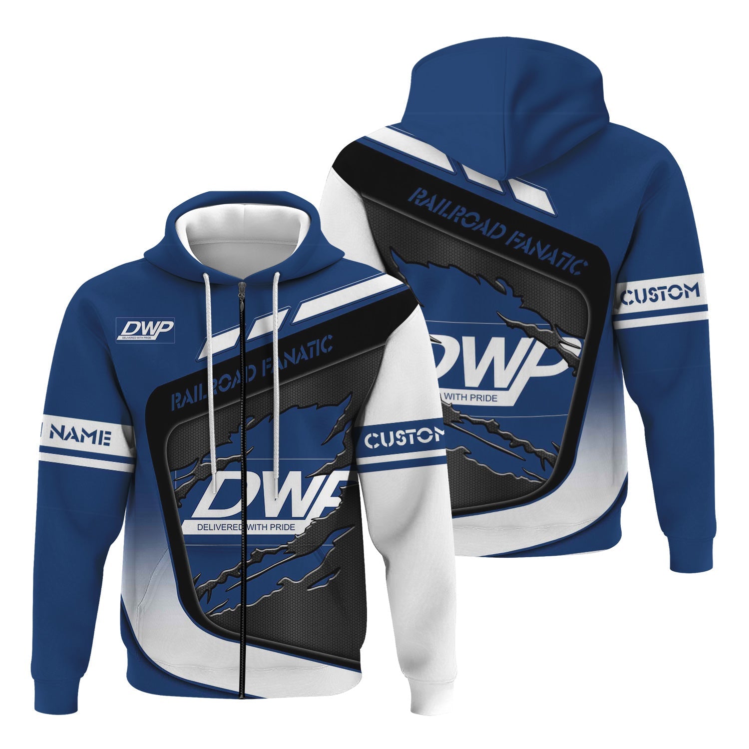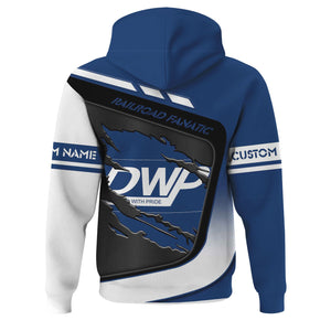 Railspirit Personalized Duluth, Winnipeg and Pacific Railway Hoodie Ripped Texture Style Train Zip Up Hoodie For Railroad Fanatic