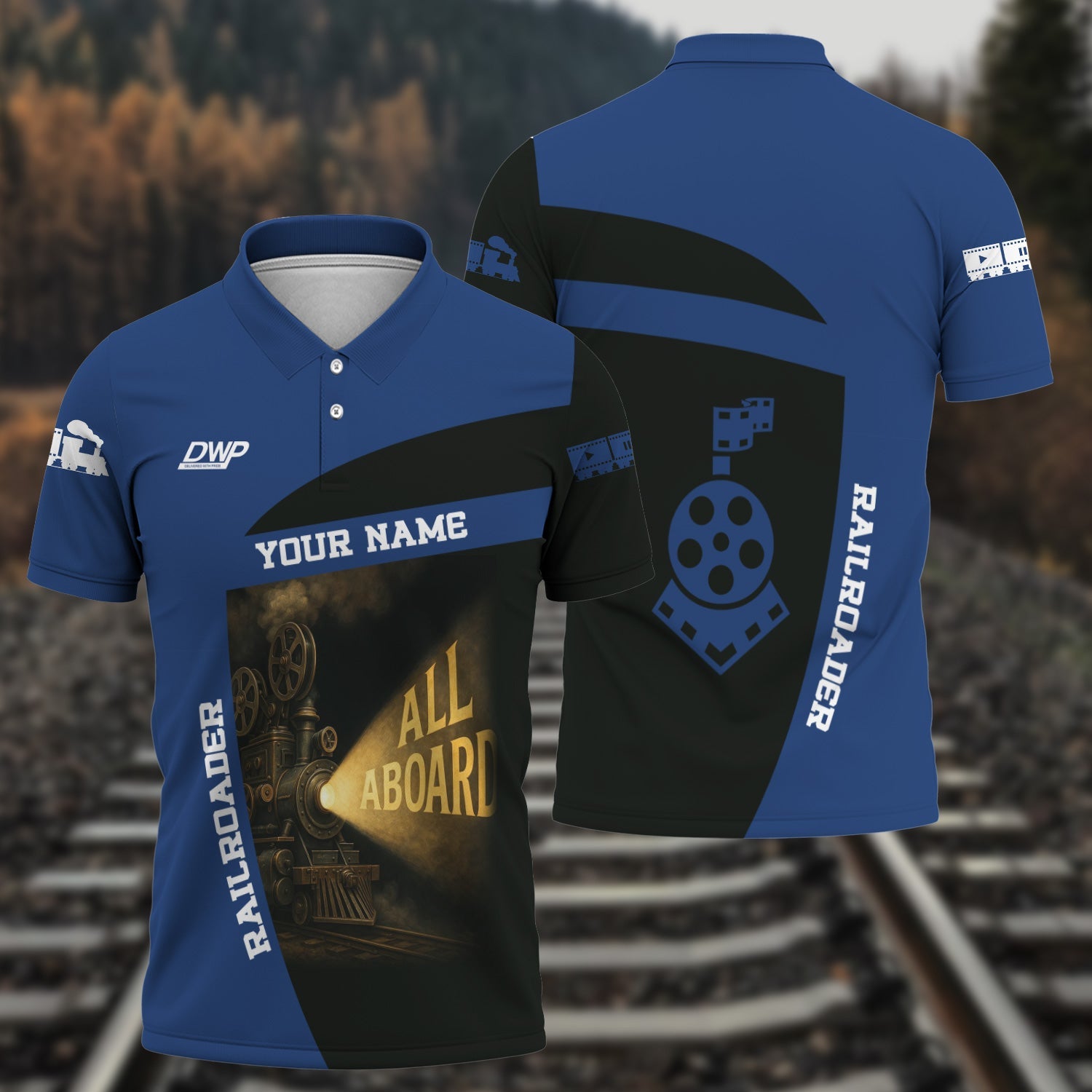 Railspirit Personalized Duluth, Winnipeg and Pacific Railway Polo Shirt All Aboard Steam Train Movie Projector Style Shirt