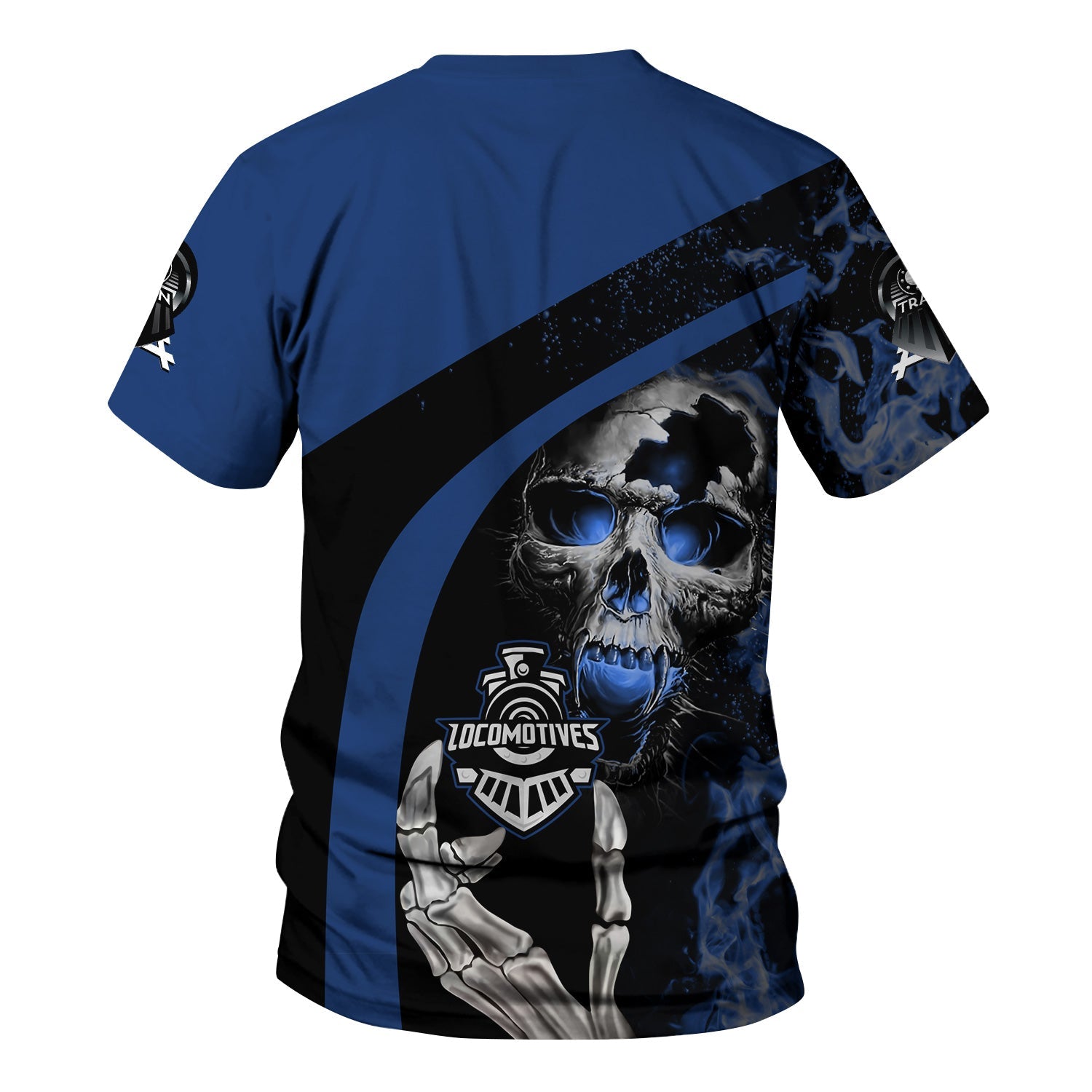 Railspirit Personalized Duluth, Winnipeg and Pacific Railway T-Shirt Flame Skull Design Train Shirt for Locomotive Fans