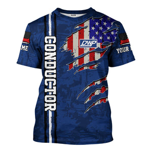 Railspirit Personalized Duluth, Winnipeg and Pacific Railway T-Shirt USA Flag Claw Art with Custom Job Train Shirt