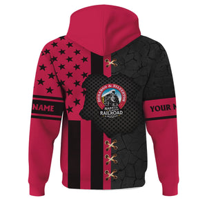 Railspirit Personalized Durango And Silverton Narrow Gauge Railroad Hoodie American Flag with Crack Effect Train Zip Up Hoodie
